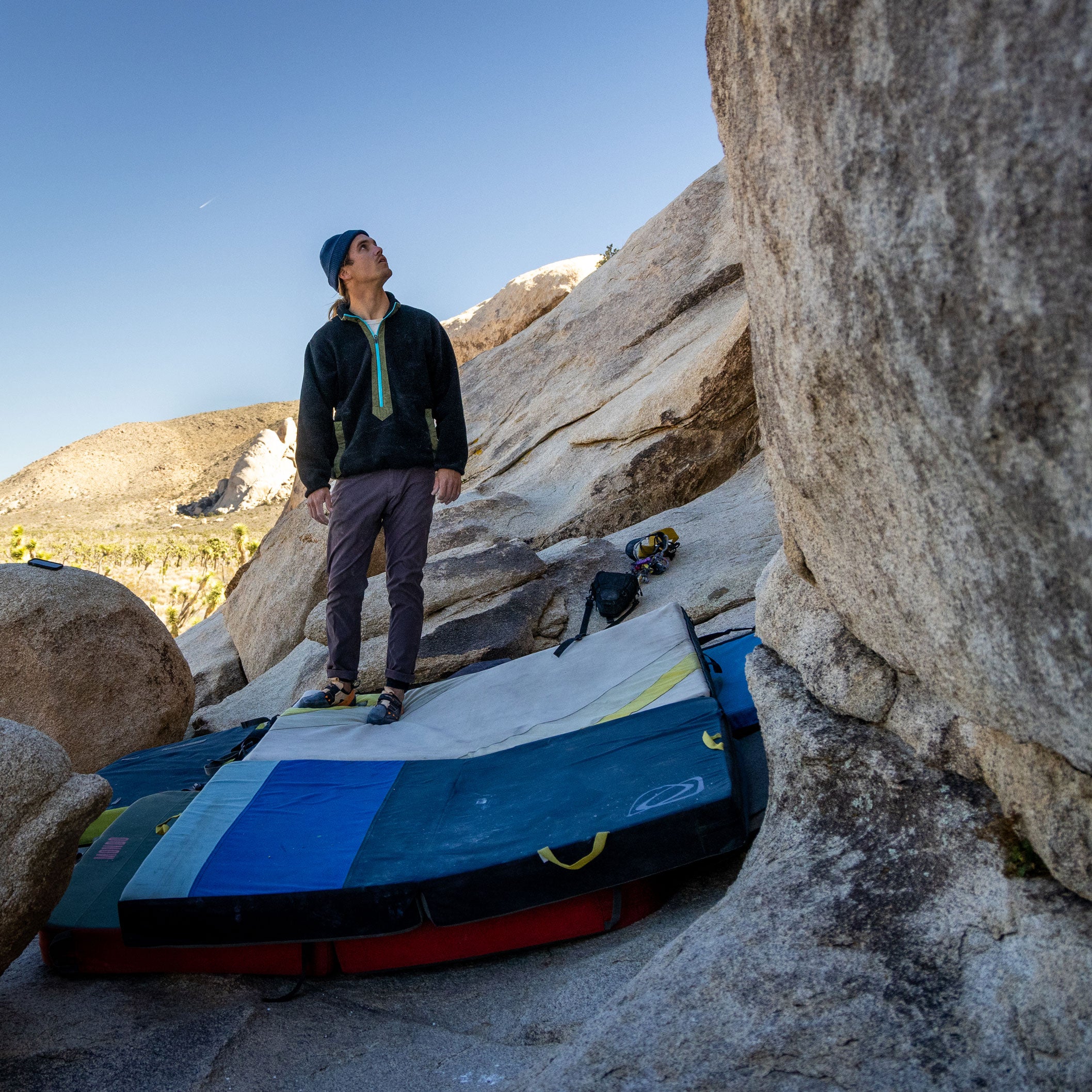 • Low-profile elastic cuffs and waist hem keep the warmth in and the fleece out of your way when accessing things like: chalk bag, harness, flamethrower.